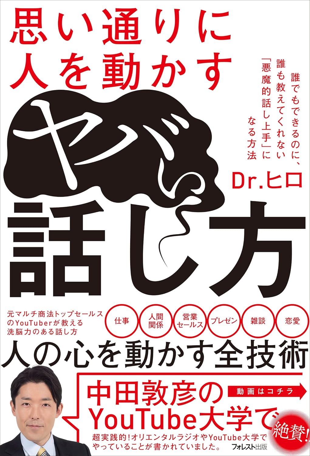 著者のDr.ヒロ氏は、早稲田大学在学中にマルチ商法に勧誘され、6年間その世界でセールスと心理操作を徹底的に学び、トップセールスにまで上り詰めた人物だ。そこから一転して破産寸前まで落ち込み、YouTubeで“洗脳を解く”側として活動を始めたという異色の経歴を持つ。その過程で得た「人の心を動かす話し方」の本質を、心理学的に、そして現実的に解き明かしているのが本書だ。